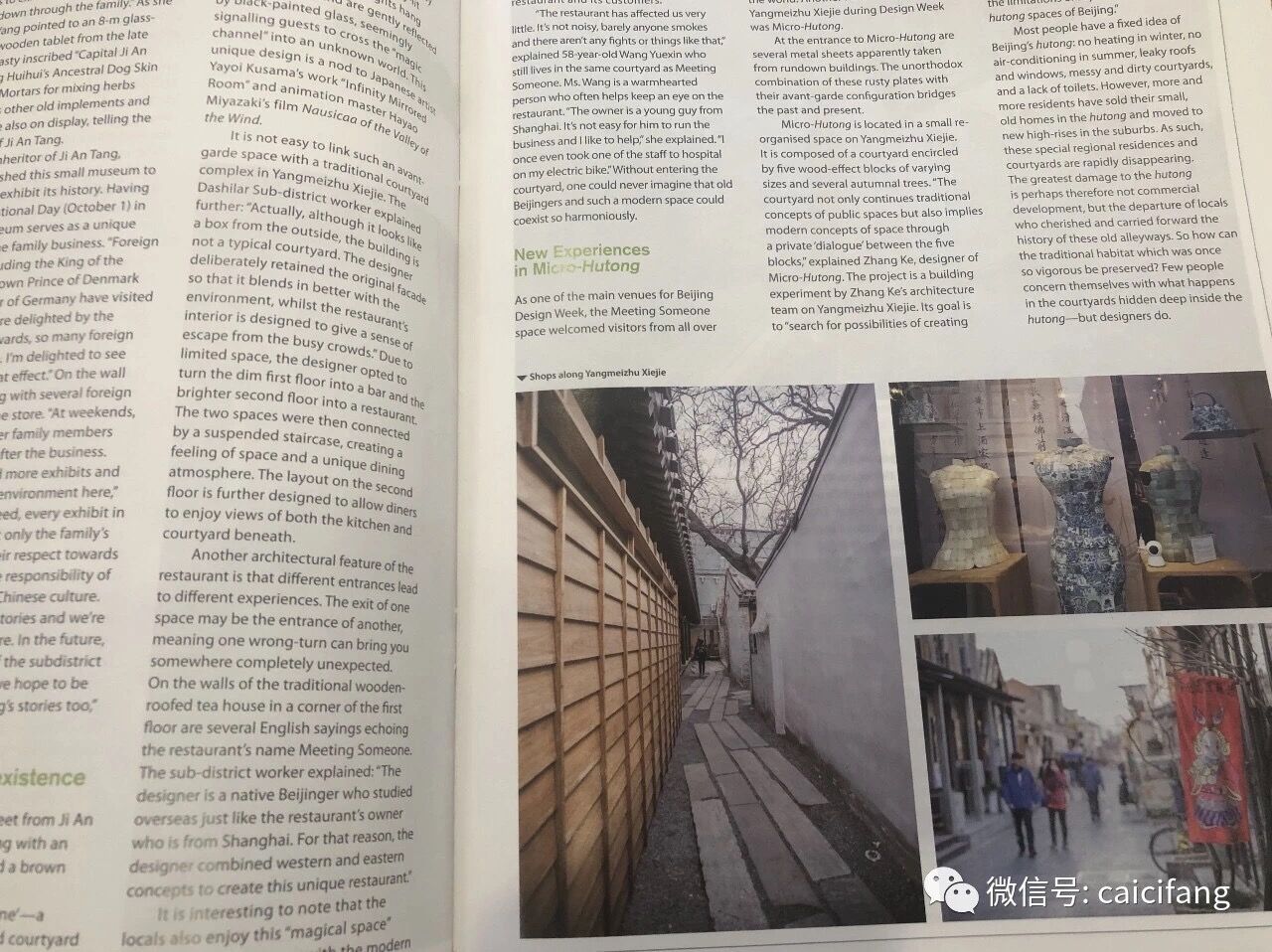 《北京》周刊是北京唯一官方的外宣刊物,采瓷坊很荣幸出现在2019年第三期刊物的主题文章中,在2018年北京最美十条街巷评选活动中,杨梅竹斜街从上千条街巷中脱颖而出,之所以“美”不仅仅体现在街区的市政设施改造和绿化,更重要的是街区人文环境的和谐美,使得杨梅竹斜街散发着与北京其他古老胡同不一样的美感。
