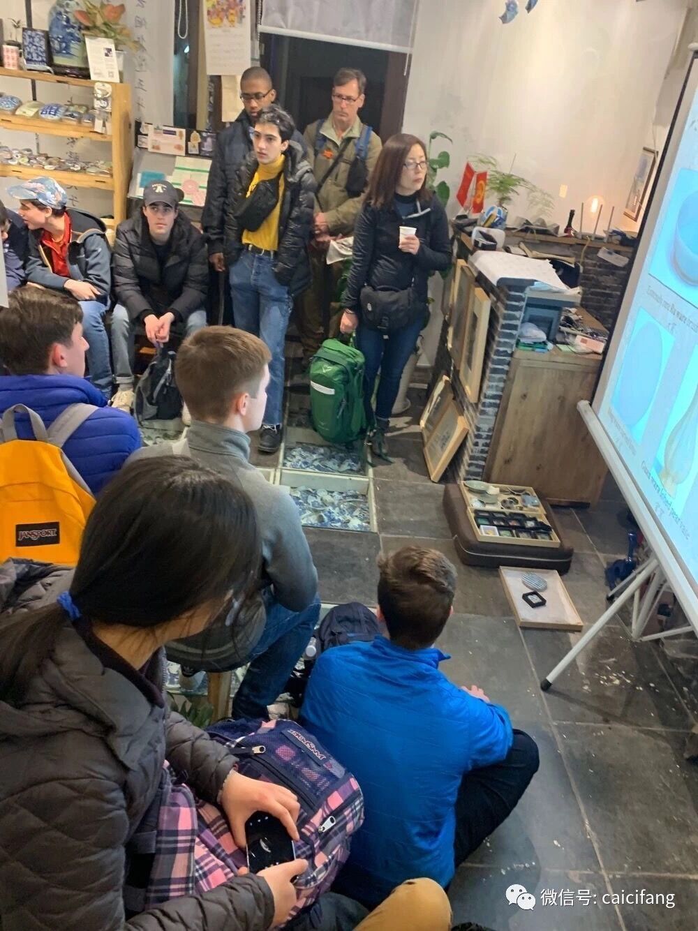 2019年3月4日,美国菲利普斯安多佛学校高中部师生团队到访杨梅竹斜街,参观北京旧城更新改造项目,采瓷坊讲师(中国文物学会会员)向同学和老师们系统的介绍了中国古代陶瓷简史、陶瓷釉色品种、古代窑址分布情况等古陶瓷知识,同学们兴致勃勃的欣赏了从宋代到清代各个时期的古代陶瓷标本。