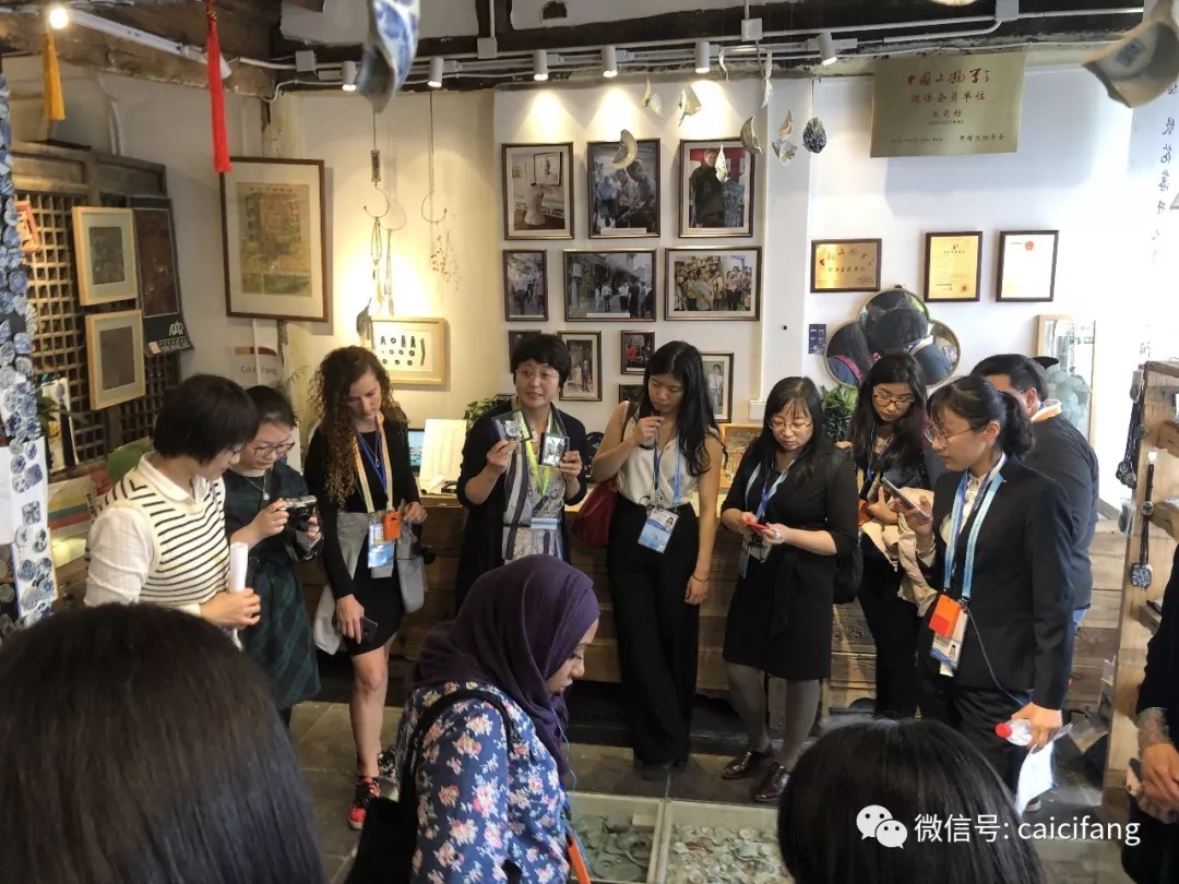 外媒记者分为两个团组分别参观了老北京兔儿爷张、铃木食堂、模范书局、采瓷坊等旧城改造空间项目。记者们对北京传统工艺品、非遗手工、传统院落改造格外感兴趣,参观的同时还与居民合影、交流。