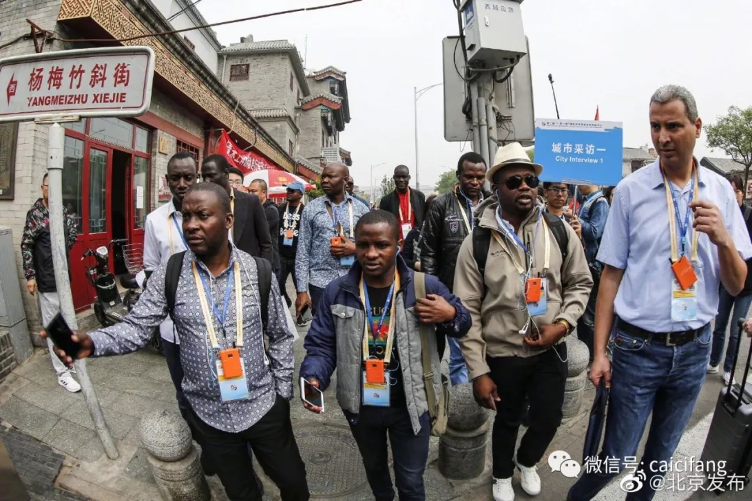 2019年4月23日上午,在第二届“一带一路”国际合作高峰论坛新闻中心、北京市人民政府新闻办公室、大栅栏投资有限责任公司相关领导的带领下,来自42个国家和地区近50余名中外记者参访大栅栏杨梅竹斜街,感受老北京传统文化。