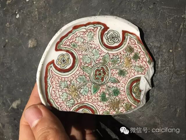 采瓷坊藏康熙仿明宣德五彩花卉纹折腰碗残片与展览中景德镇御窑厂标本一致。